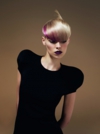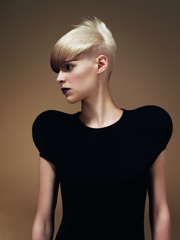 サスーン新作カットは、そうしたダダイストたちの影響を受けながら、神経質な80年代、厳しい時代の粋を織り交ぜています。カットは一見調子はずれですが、ボリュームと質感に印象的なコントラストを意図的に演出し、ロウソク状のパーマは、程よく仕立てられたロングとショートの複雑な組み合わせからなる鉢状のパネルの上に綿菓子のようにかかり、大げさな効果を作り出しています。
