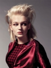 若者の反逆というテーマはヘアースタイルに表現され、リーゼントが革新への出発点として取り上げられています。輪郭は後ろから前に引き伸ばされ、そしてイレギュラーな質感に分割されています。継続的にシザーの刃を動かす間に指を髪の軸に沿ってスライドさせ、千切り的に頭頂部を抜けて切られています。こめかみ付近の細身のシェイプと長く取られたバックにより流線形が形作られていて、これによって象徴的な50年代ルックが完成します。
