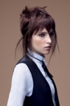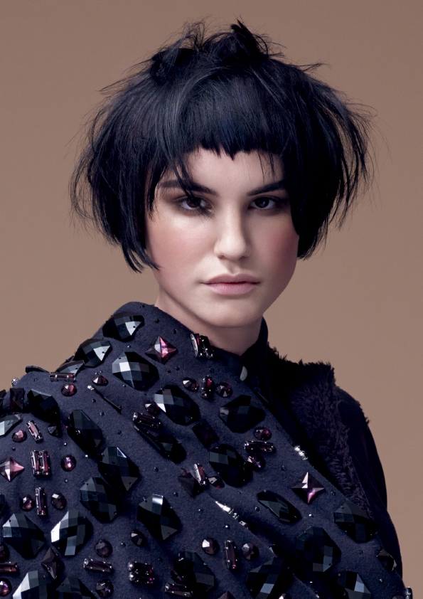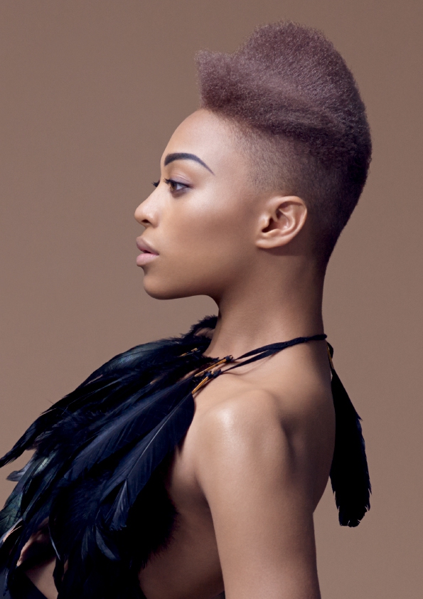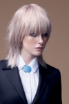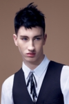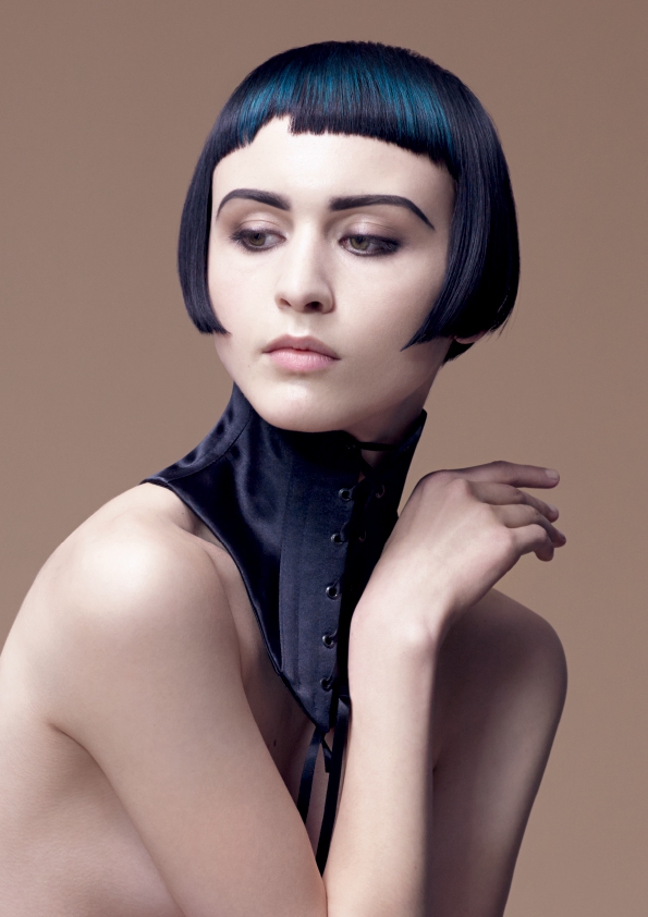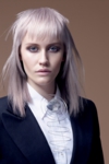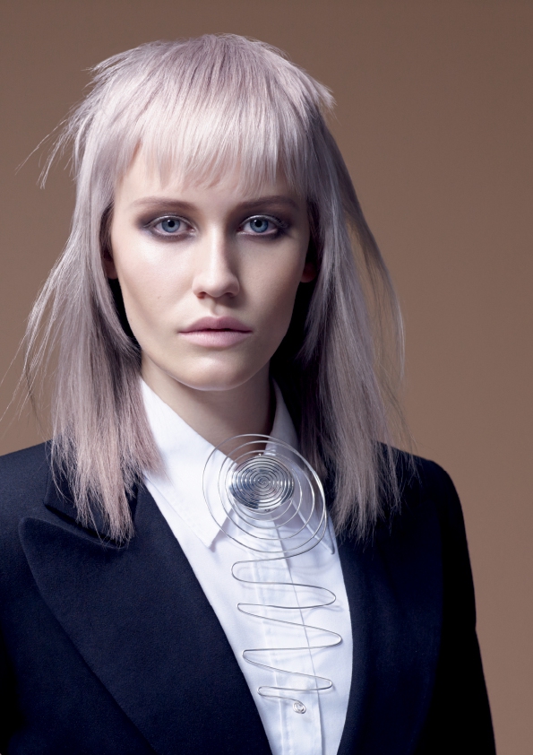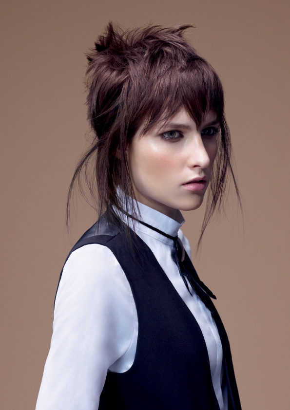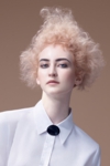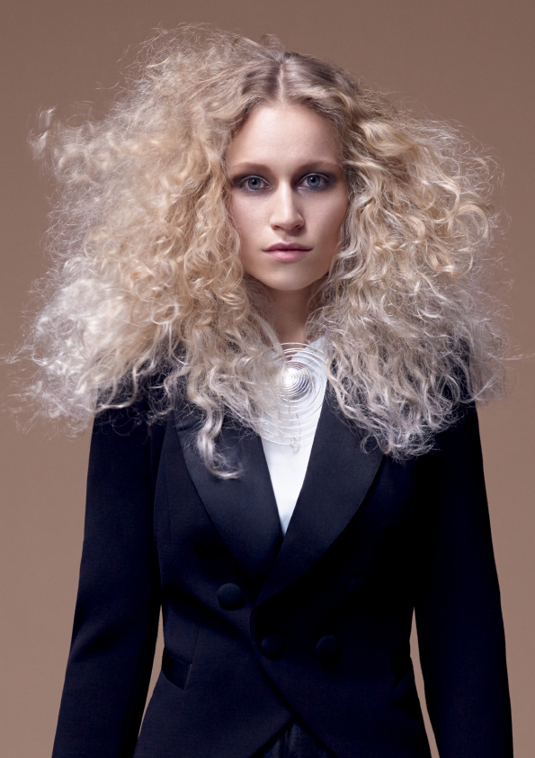 ジオメトリックな輪郭はギザギザなセクショニングと、整髪されたフェードにより遮られます。重なり乱れたレングスは極端なオーバーダイレクションと結びつき、嵐の吹き荒れるような感覚のタフなテクスチャーを創り上げます。クリアなデザインは示唆されると同時に破壊され、エッジは大雑把に不明瞭なものとなります。