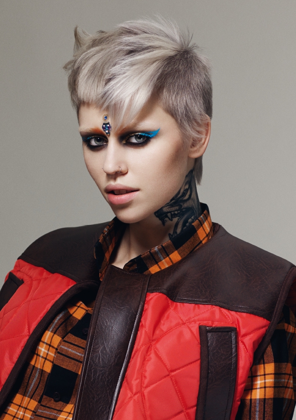 KARMA BUMS(カルマバムス):アイビースタイルはケルアックの小説に登場する反抗的なアウトサイダー達が自然なヘアーラインの中にマットな毛皮のような質感を施していたように、ビートニクの「ZEN(禅)」というアンダーグラウンドカルチャーによって破壊されます。内部のカットはバイオレットとグレーの貪欲なカラーと共にシェイプを形作ります。
