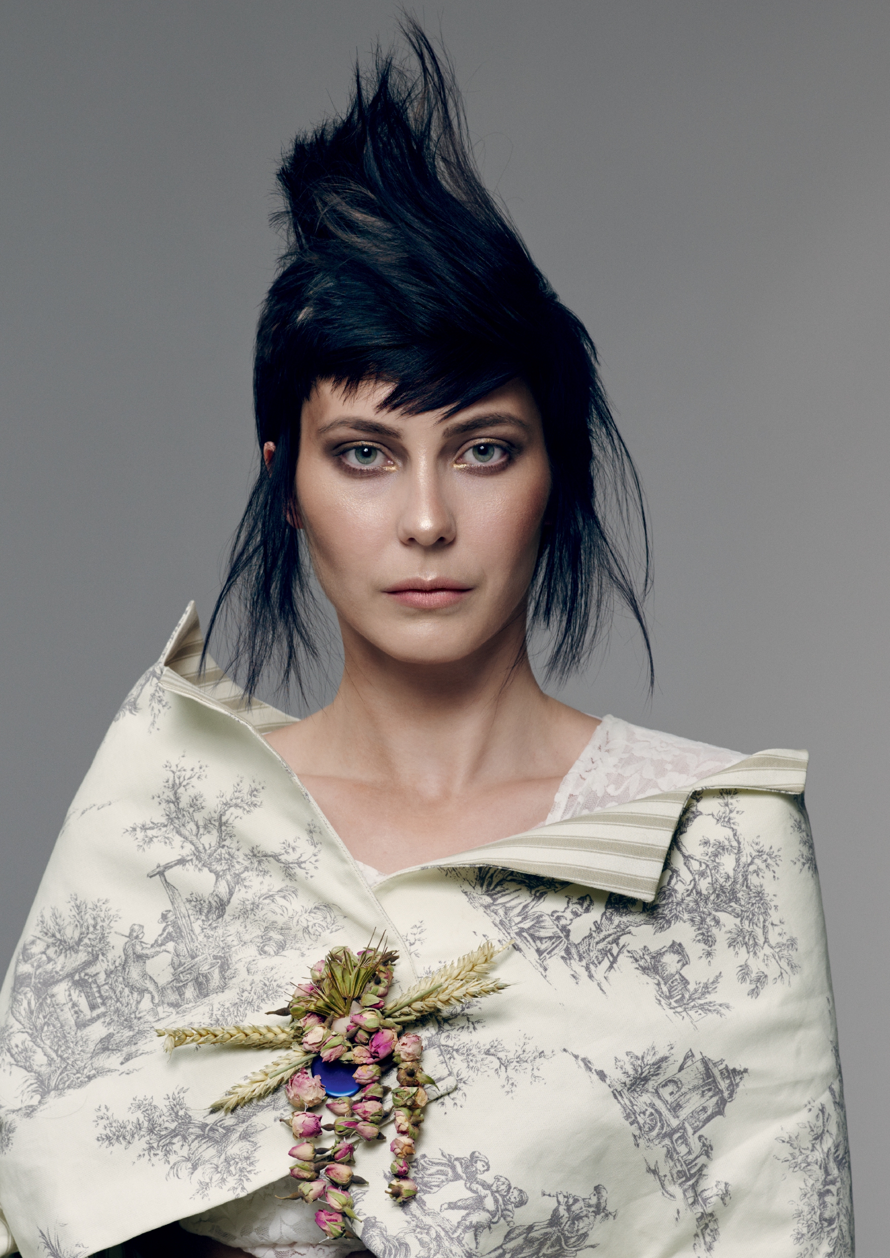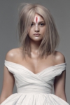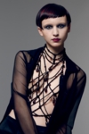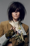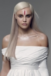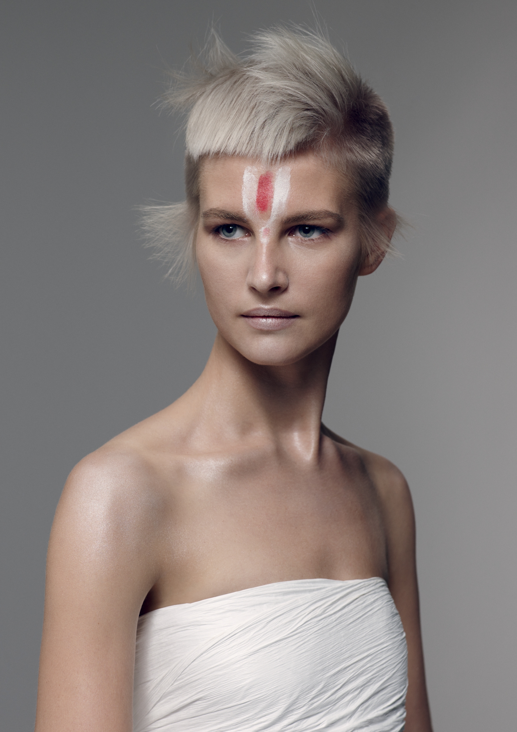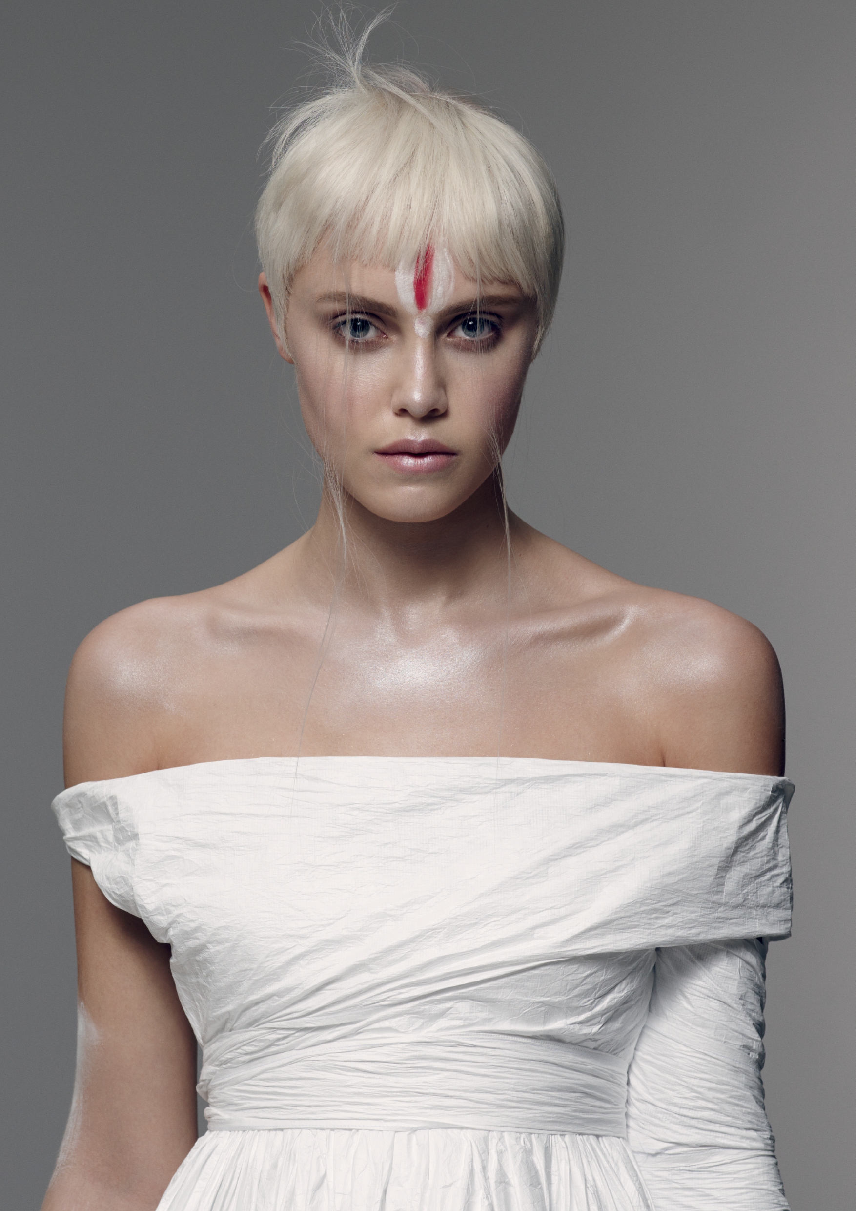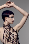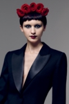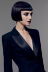 霊的な反逆を起こした堕天使の姿の中に、新古典主義のモダンな再構成があります。アシンメトリックにボーイッシュなバーバリングはピュアなワンレングスのラインに結びつきます。二層構造を使いコントロール