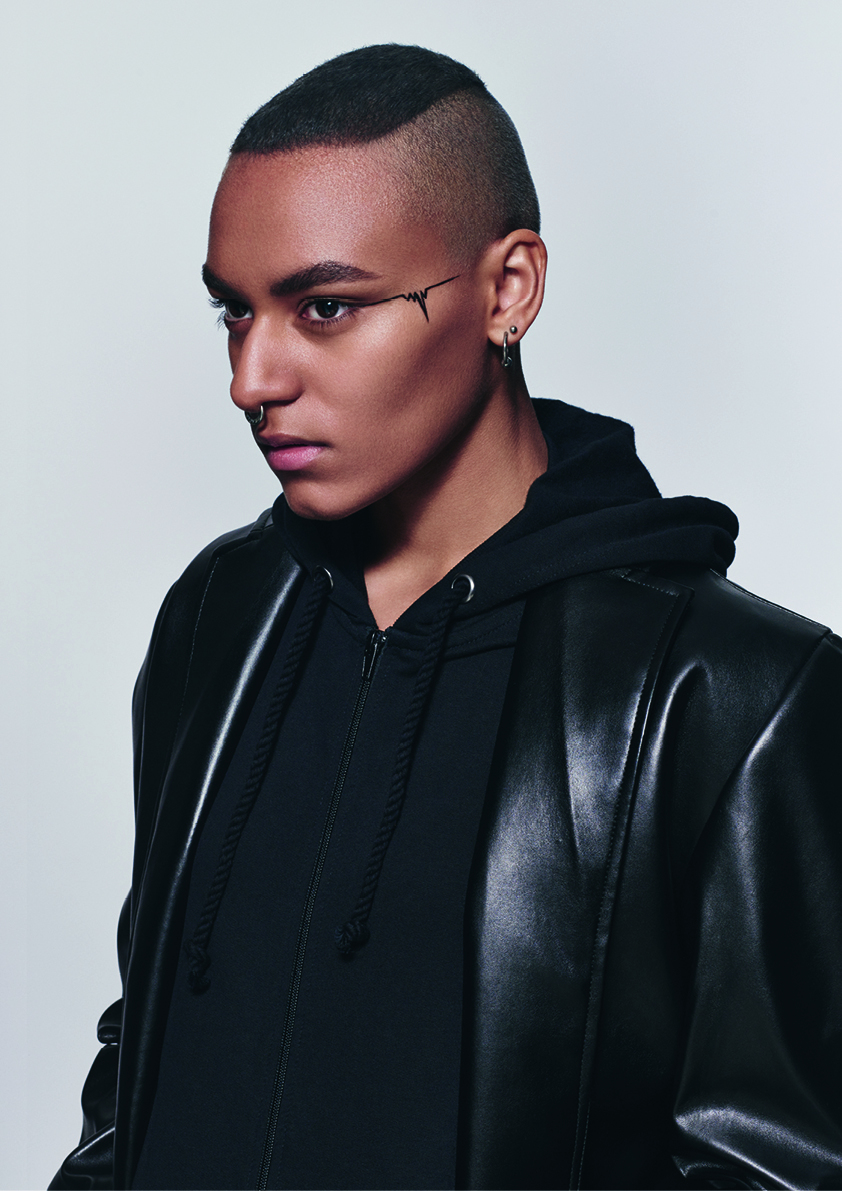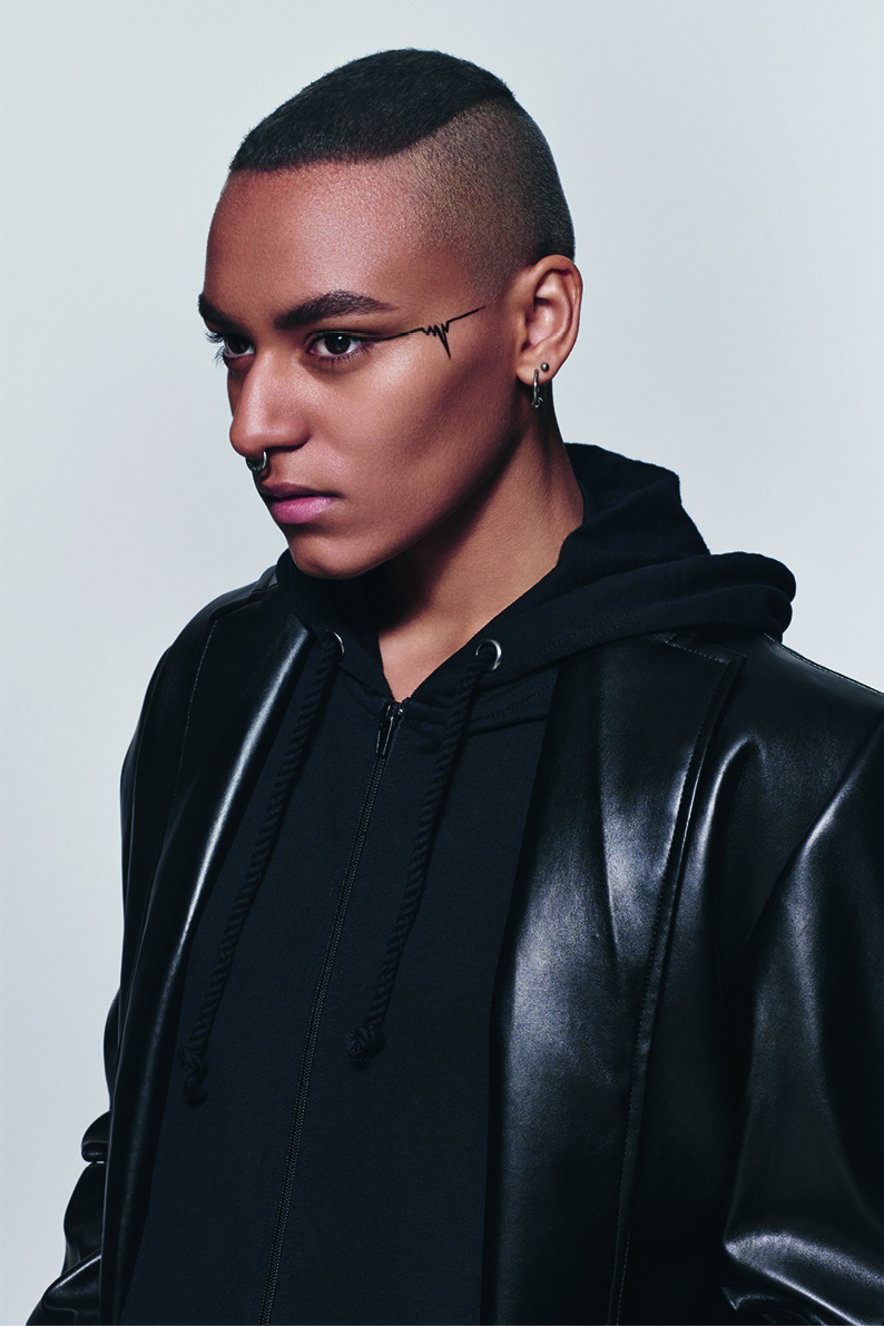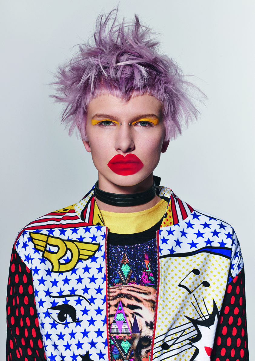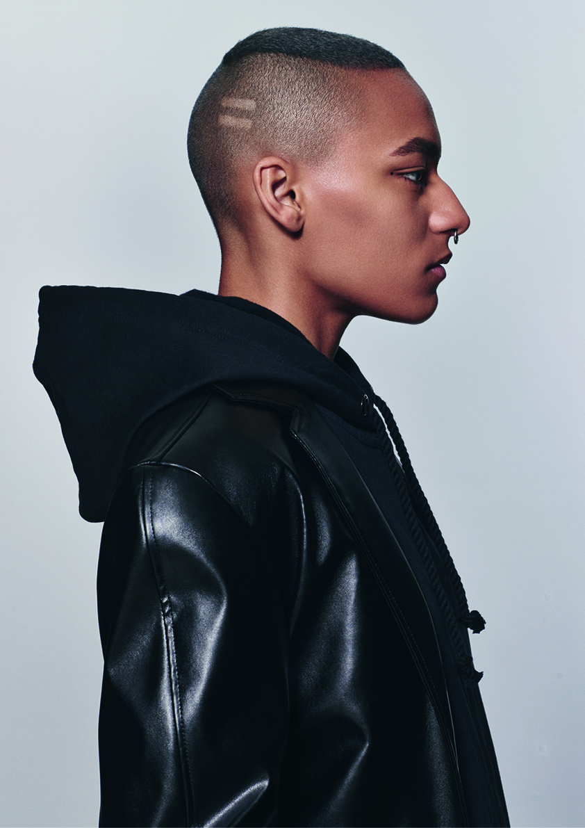 決して人と交わらないユニセックスなヒーローたちは、露わにされた実利性のモノクロの世界で一つに融合されます。定義付けされない若さの様子に強く惹かれたファッションデザイナー、ラフ・シモンズの第四の性(男性にも女性にもなり切れていない青少年の時期)の実験からインスピレーションを受け、サスーンアカデミーはカーボングレーのG.Iジョーと米国海軍のモヒカンを、クールブラウンとフラットレッドのエッジを締めたボブで混ぜ合わせて表現しました。