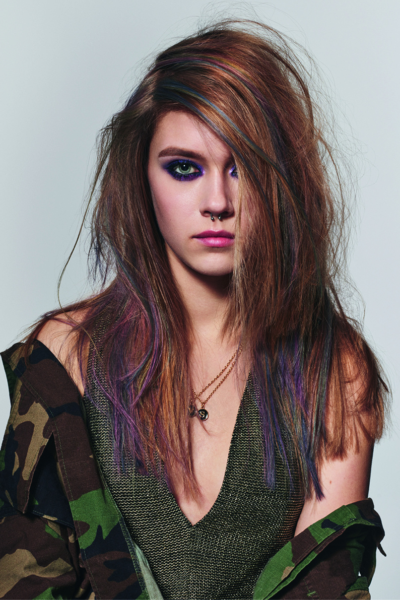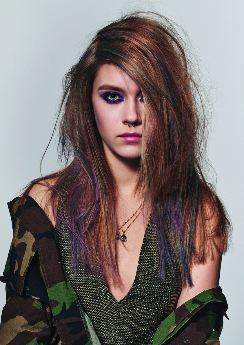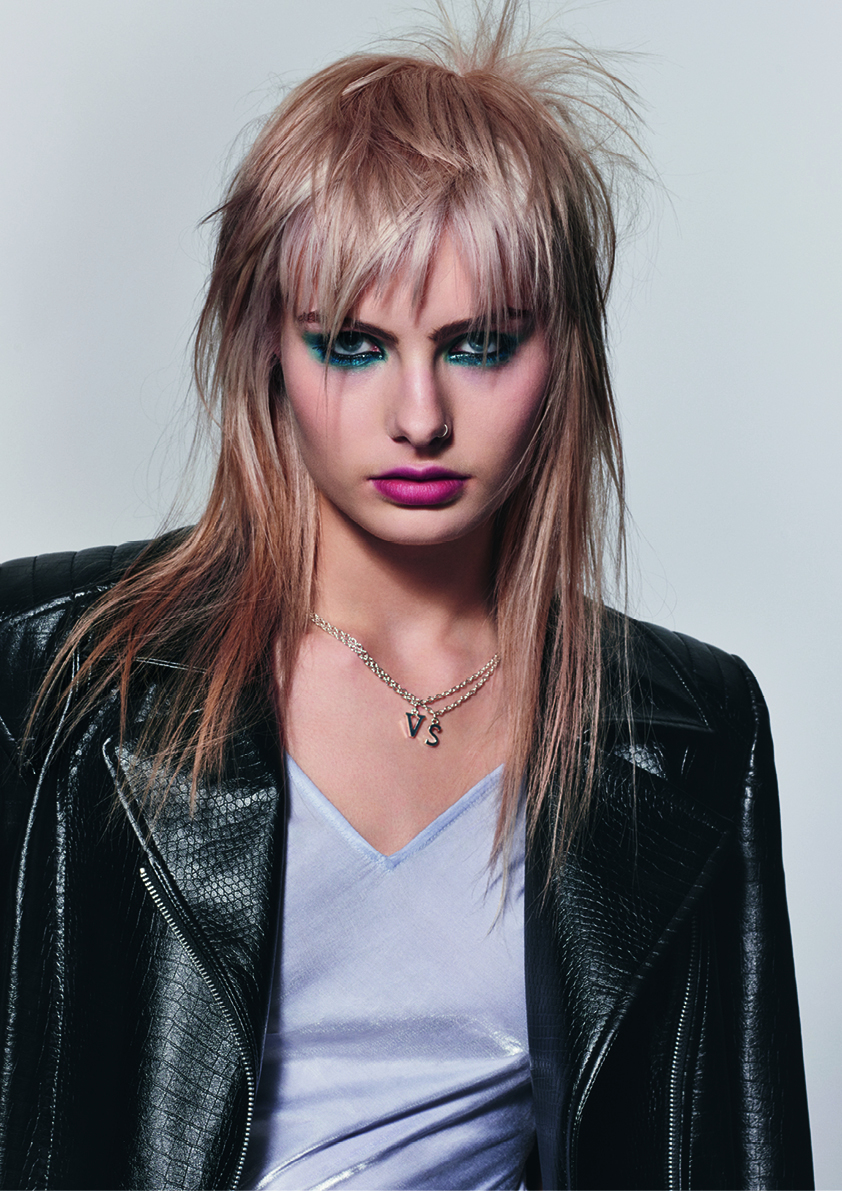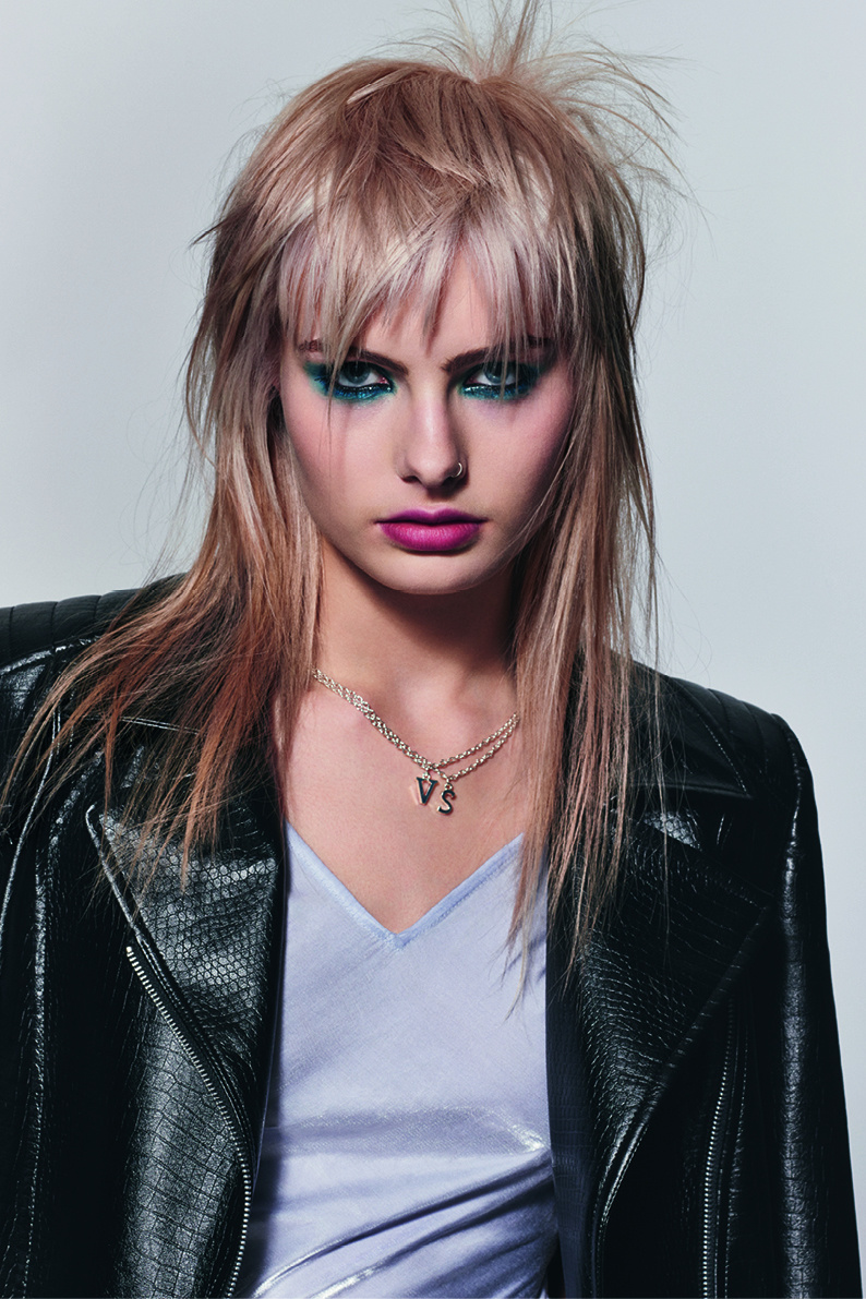 グランジミュージックの女神でありスタイルアイコンでもあるコートニー・ラブは、ロックスタイルの女性の新たな解釈に刺激を与えます。彼女の1990年代シアトルのリサイクルショップスタイルは、サテンのベビードールドレスに重いブーツを履き、煌めくティアラにワイルドなヘアーとくすんだ赤の口紅を合わせた(性差別の撤廃を求める)ライオットガールのスタイルに出会います。そのスタイルには、祭りの雰囲気漂う色あせたピンクで頭にぴったり貼りついたレイヤーと重いフリンジが、明るいレッドとオレンジで人目を引く根元部分を強調します。