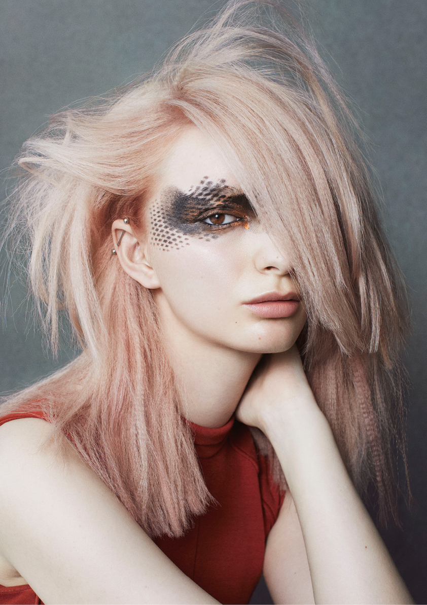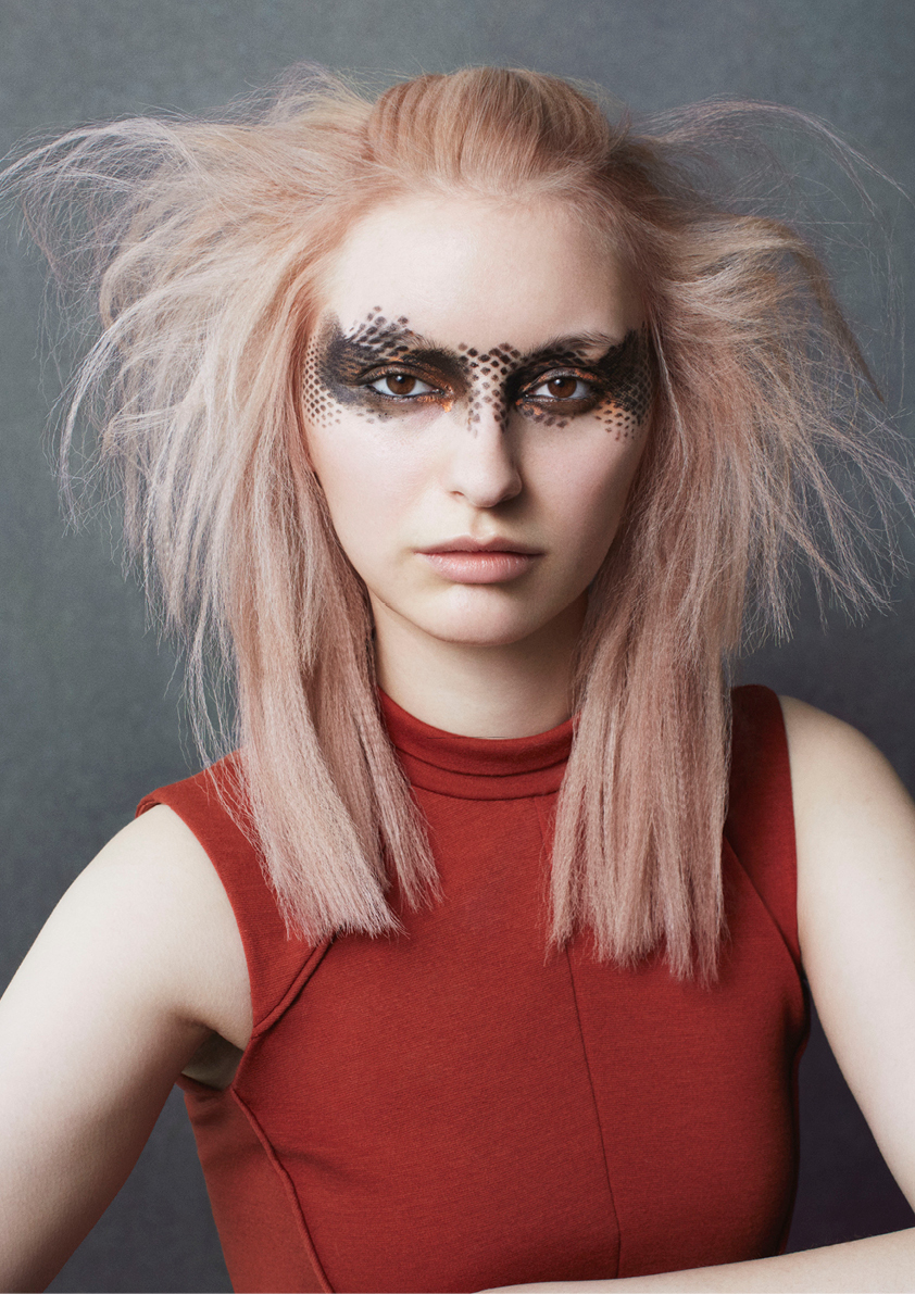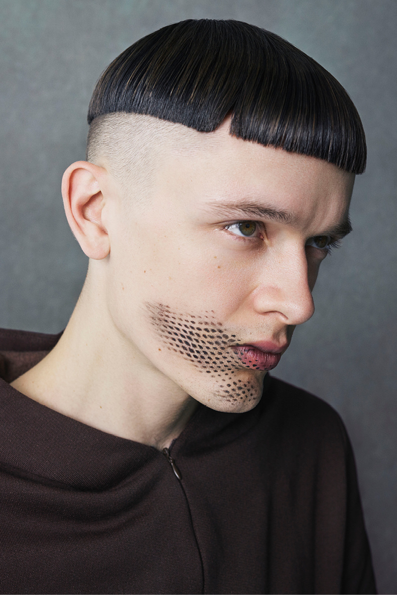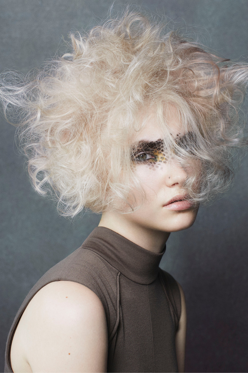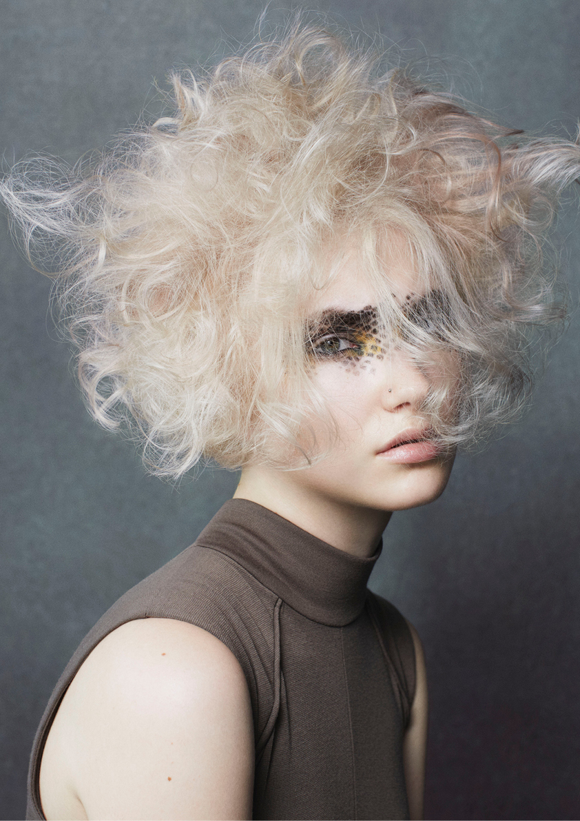 複数のカット技術と身に着ける要素は後世に受け継がれるサスーンのエディトリアルスタイルに敬意を表しています。往年のプディングボウルや、ロジャー・トンプソン氏のmifumiからインスピレーションを得たシニョンやポニーテール、ヴィダルの作った革新的なスクエアカール。広範囲に作業するエリアはポインティングやスライシングを使わず、ありのままのセクショニングは新しいヘアメイクの土台になっています。
